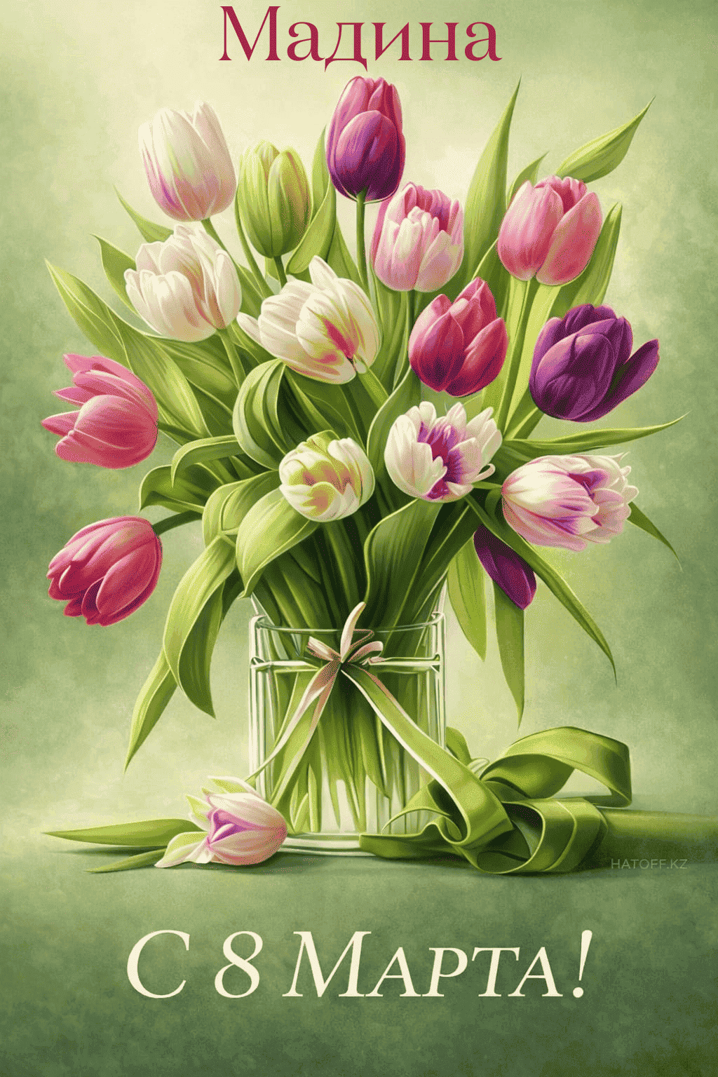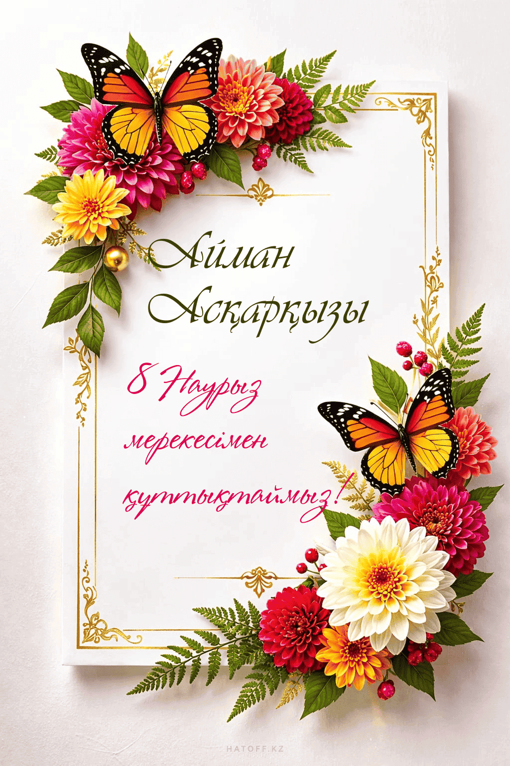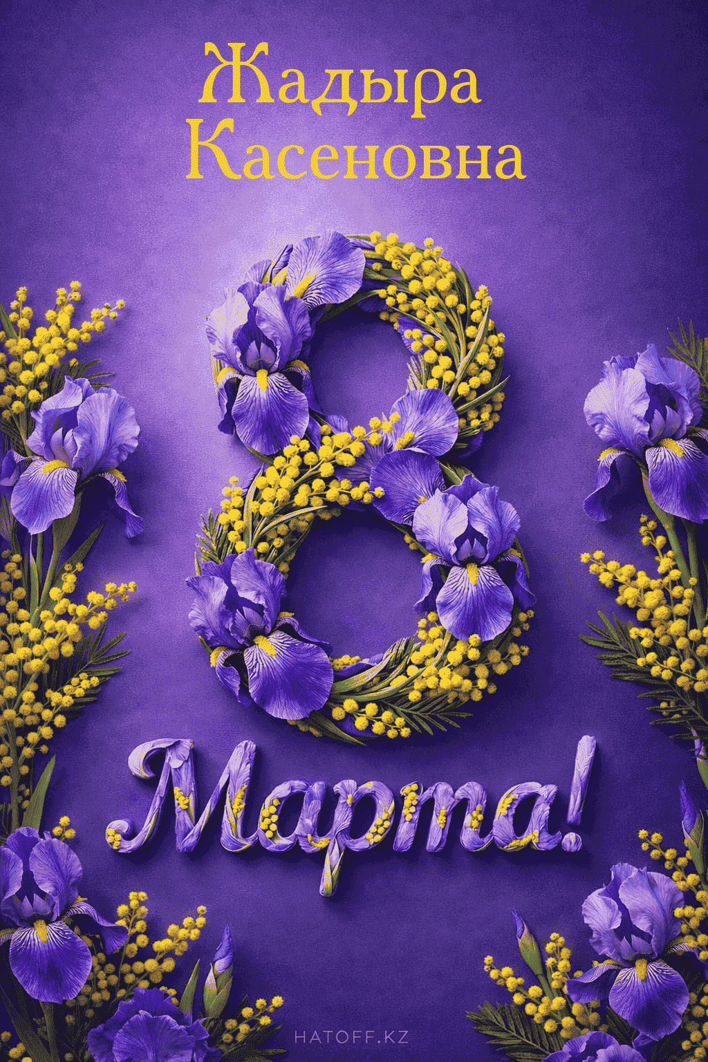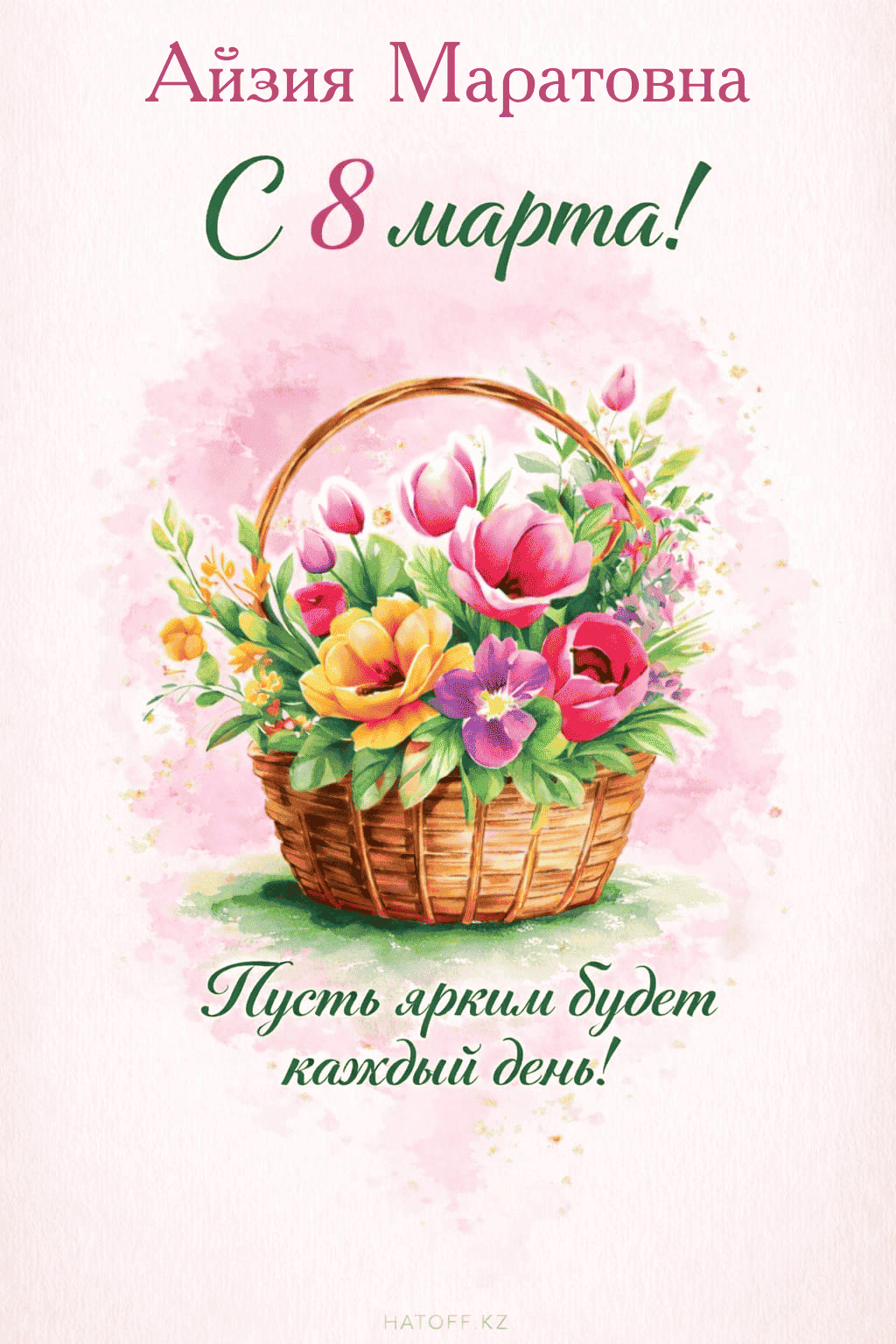 Скачивайте в Галерею и отправляйте сколько угодно раз, или поделитесь через WhatsApp / Telegram — от имени hatoff.kz с вашей подписью.
