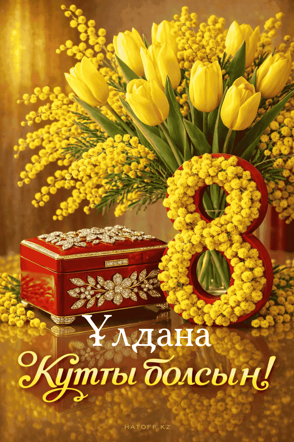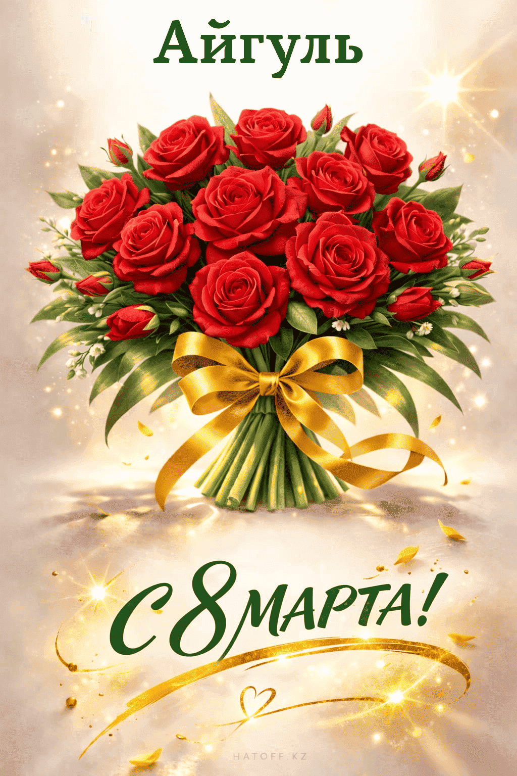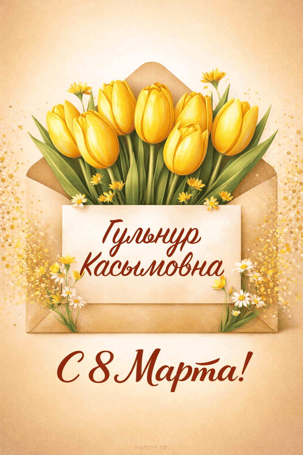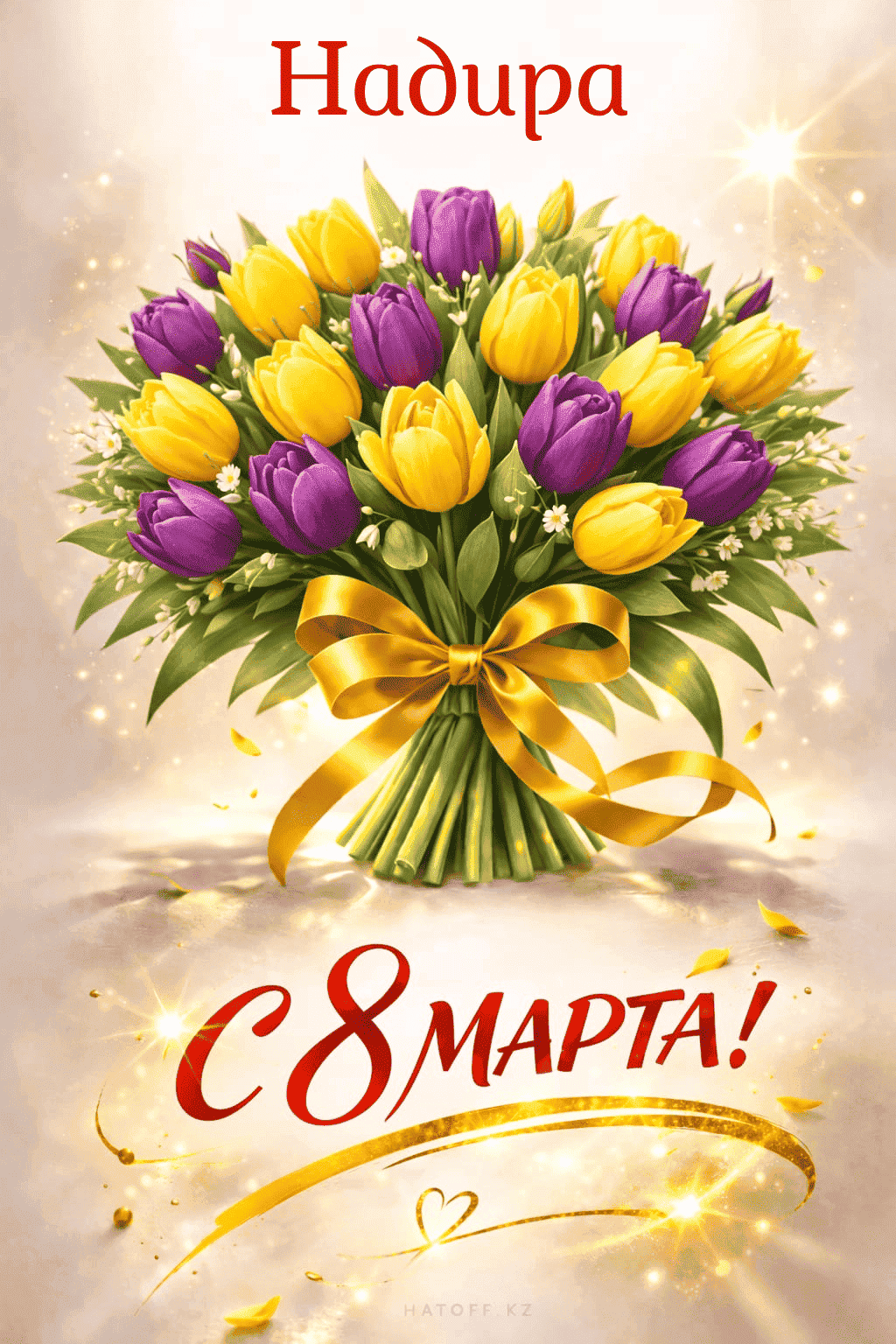 Скачивайте в Галерею и отправляйте сколько угодно раз, или поделитесь через WhatsApp / Telegram — от имени hatoff.kz с вашей подписью.