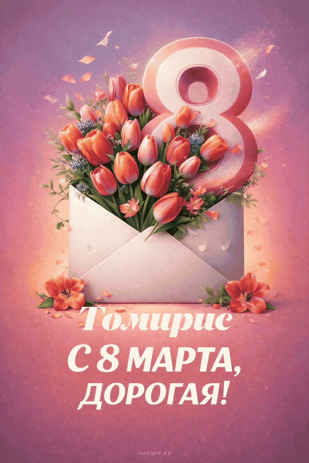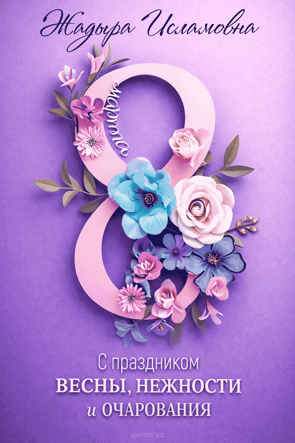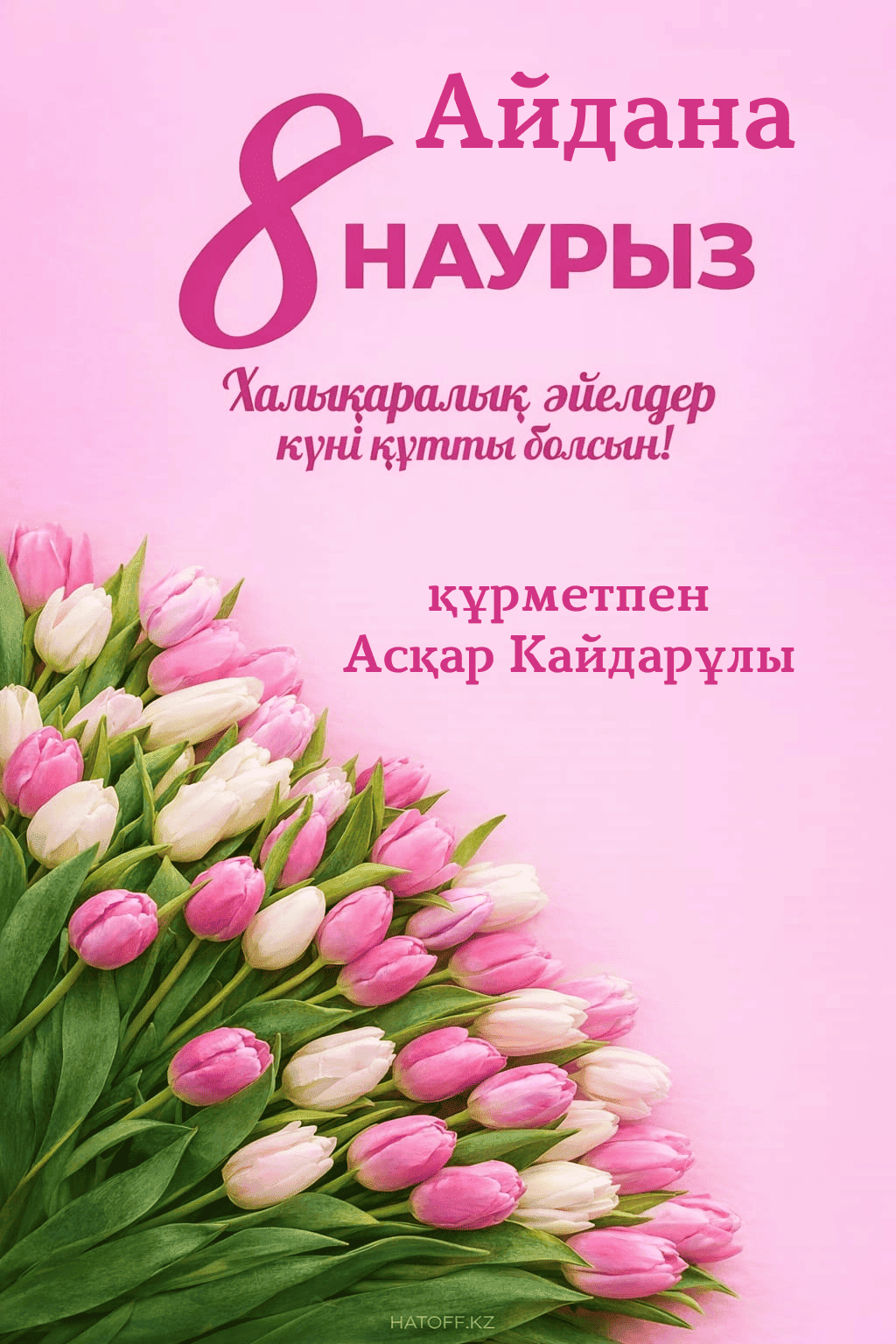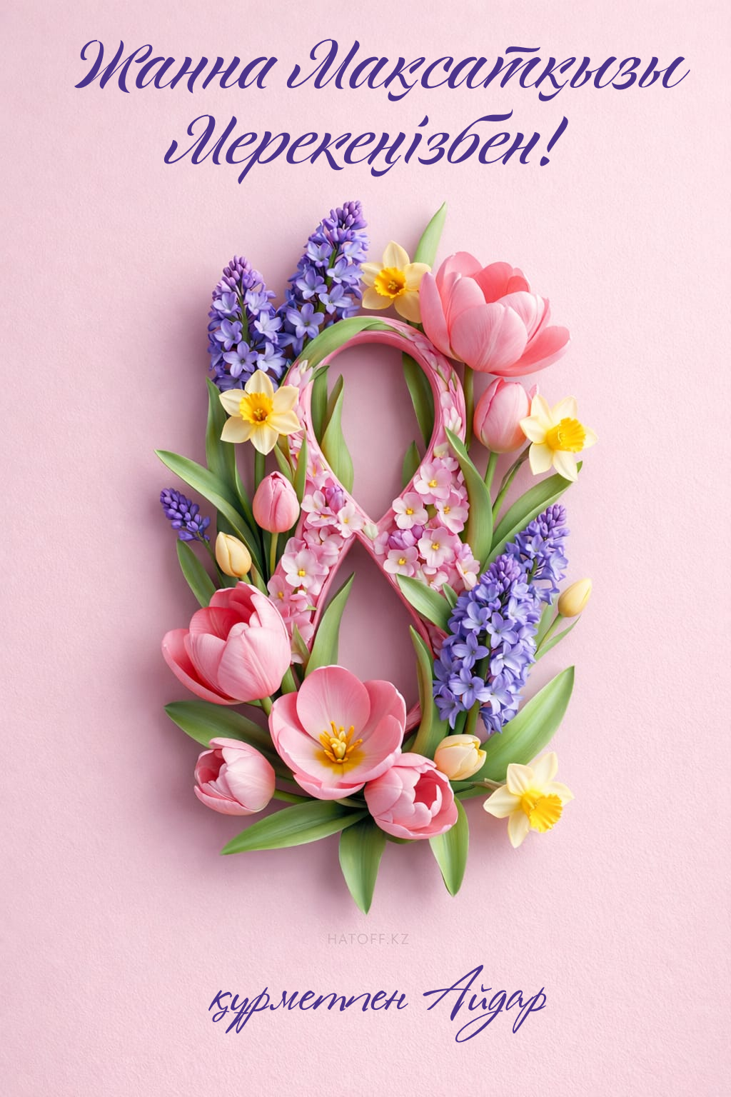 Скачивайте в Галерею и отправляйте сколько угодно раз, или поделитесь через WhatsApp / Telegram — от имени hatoff.kz с вашей подписью.