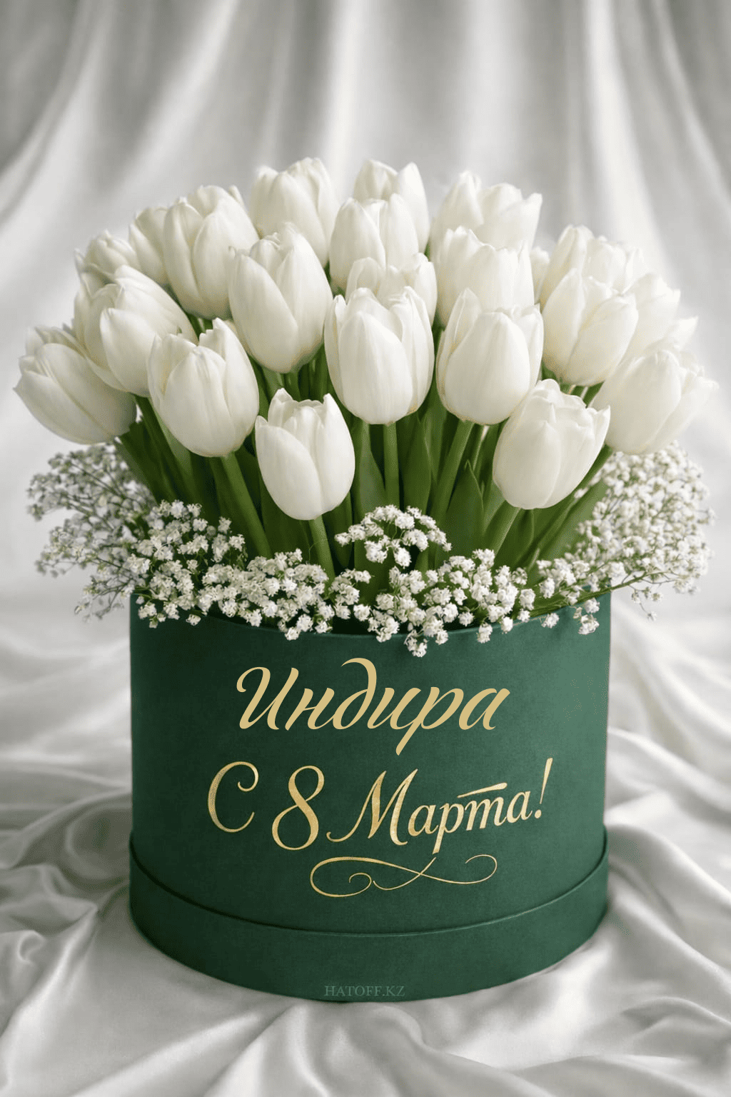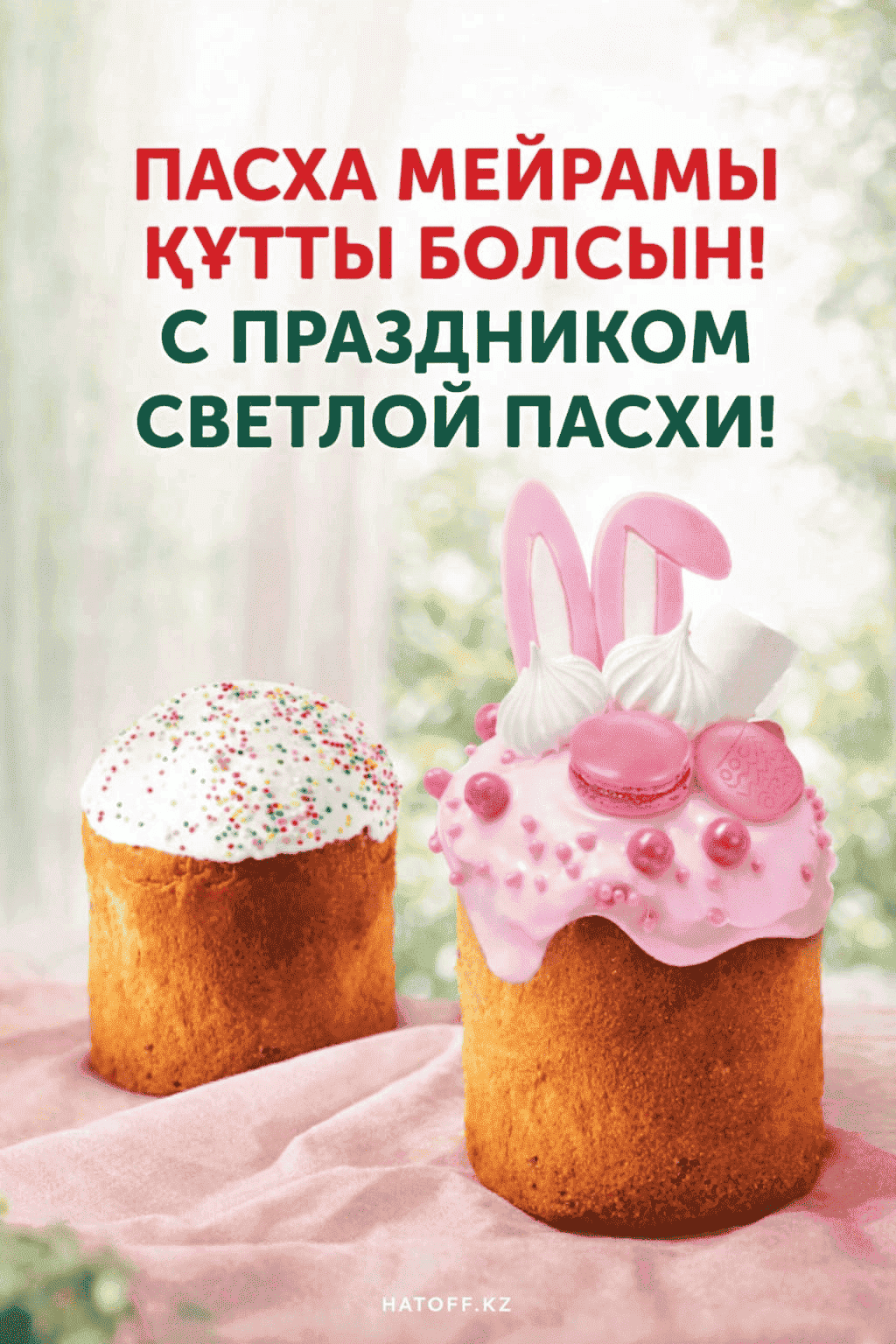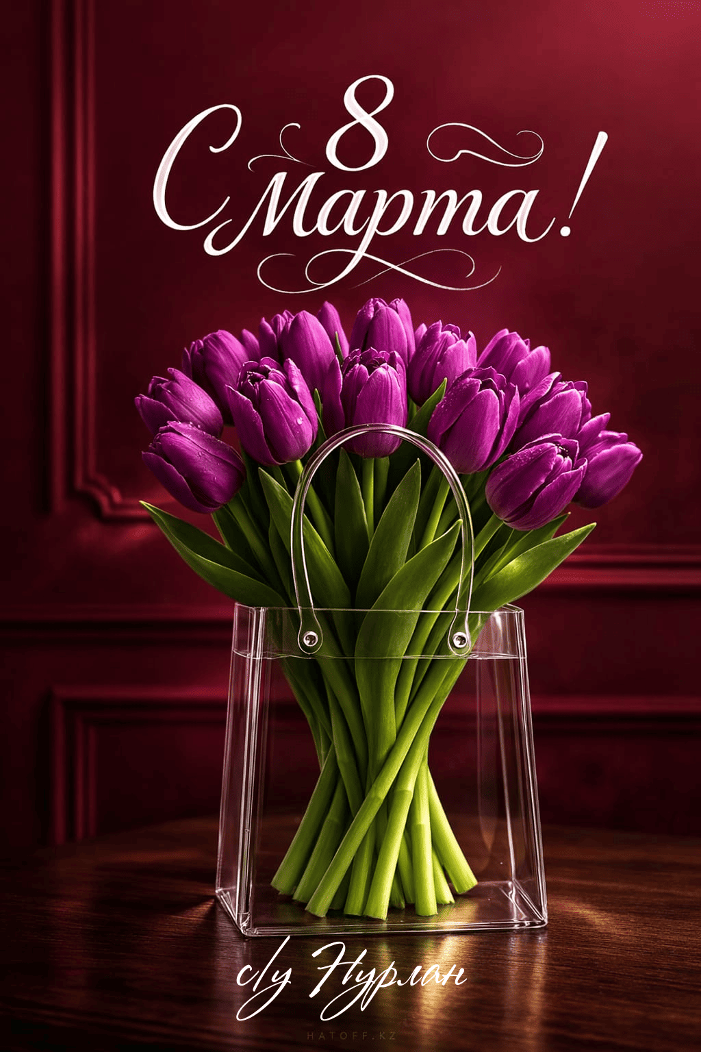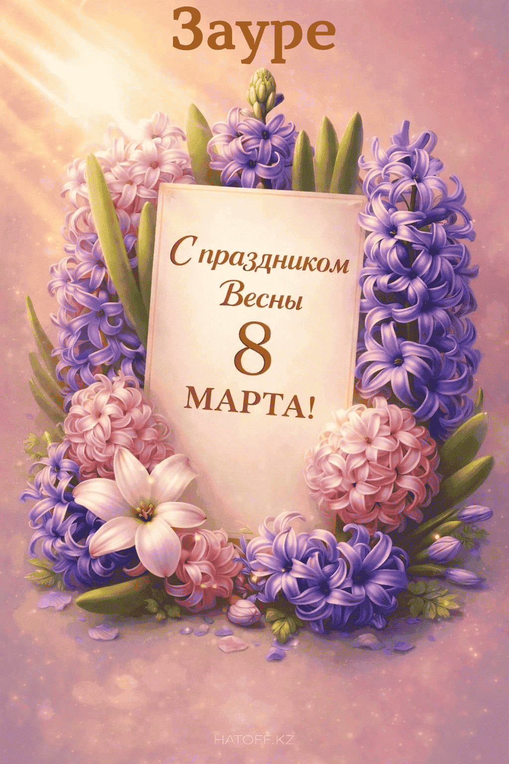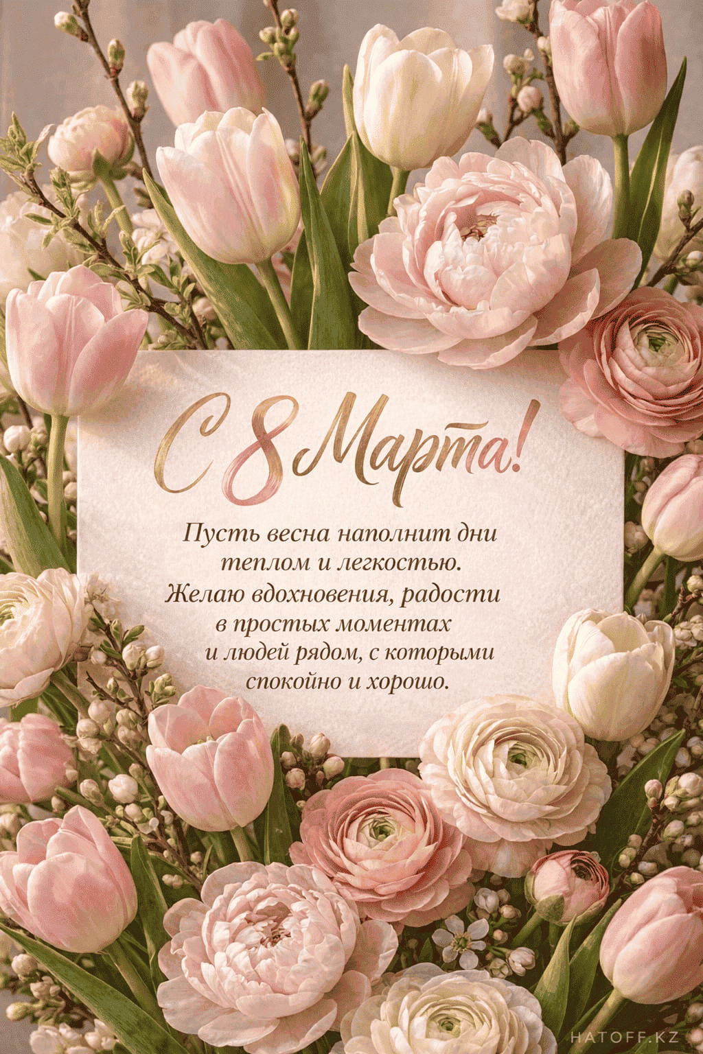 Скачивайте в Галерею и отправляйте сколько угодно раз, или поделитесь через WhatsApp / Telegram — от имени hatoff.kz с вашей подписью.