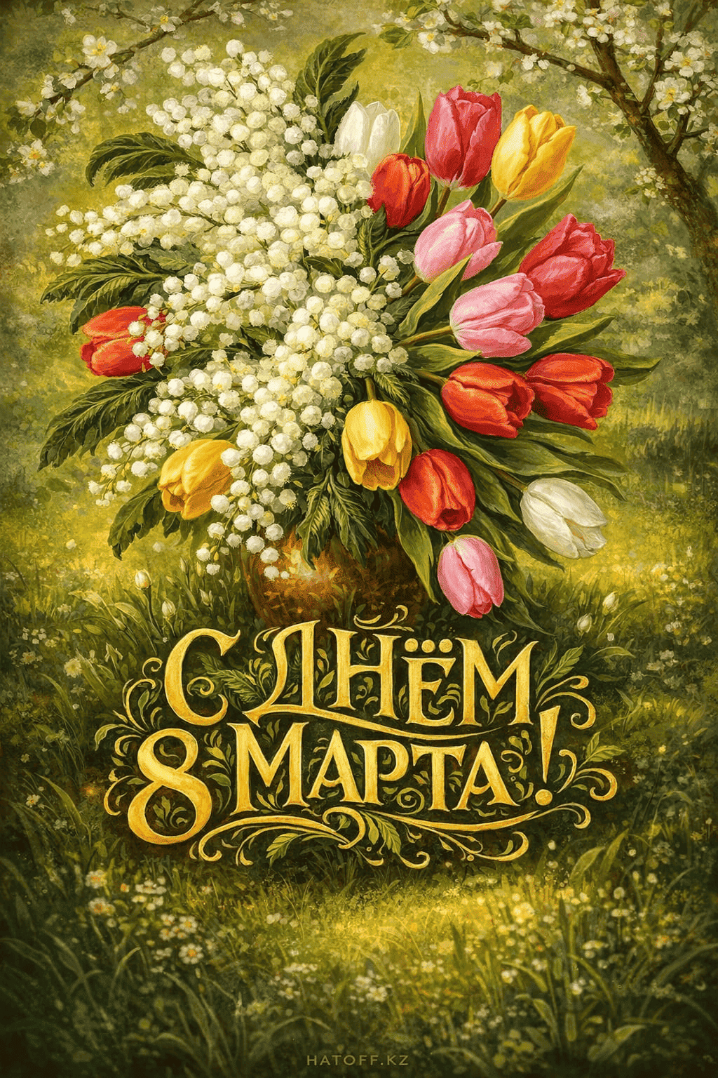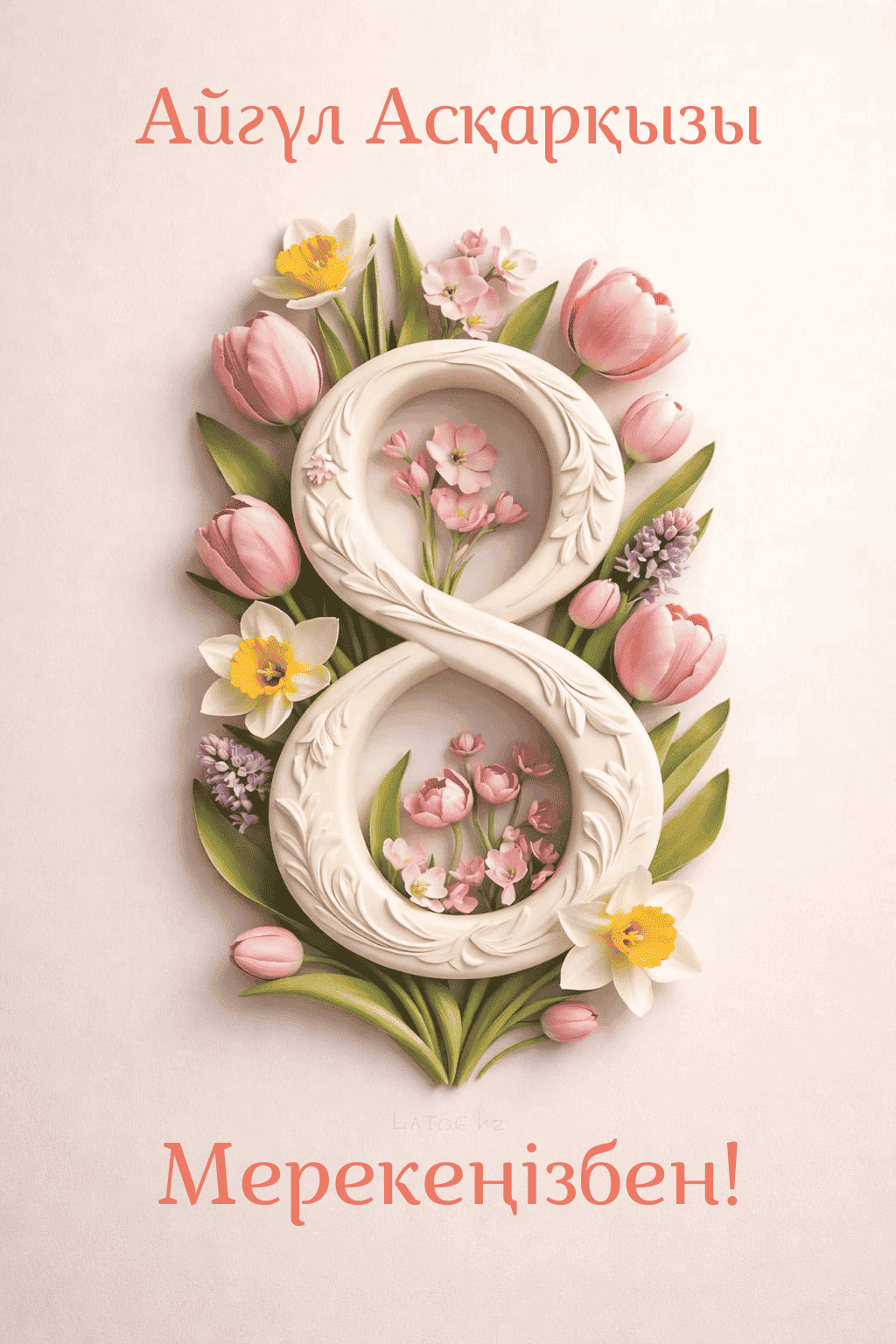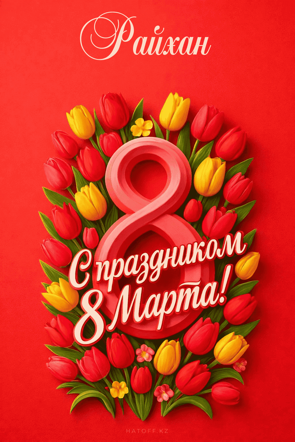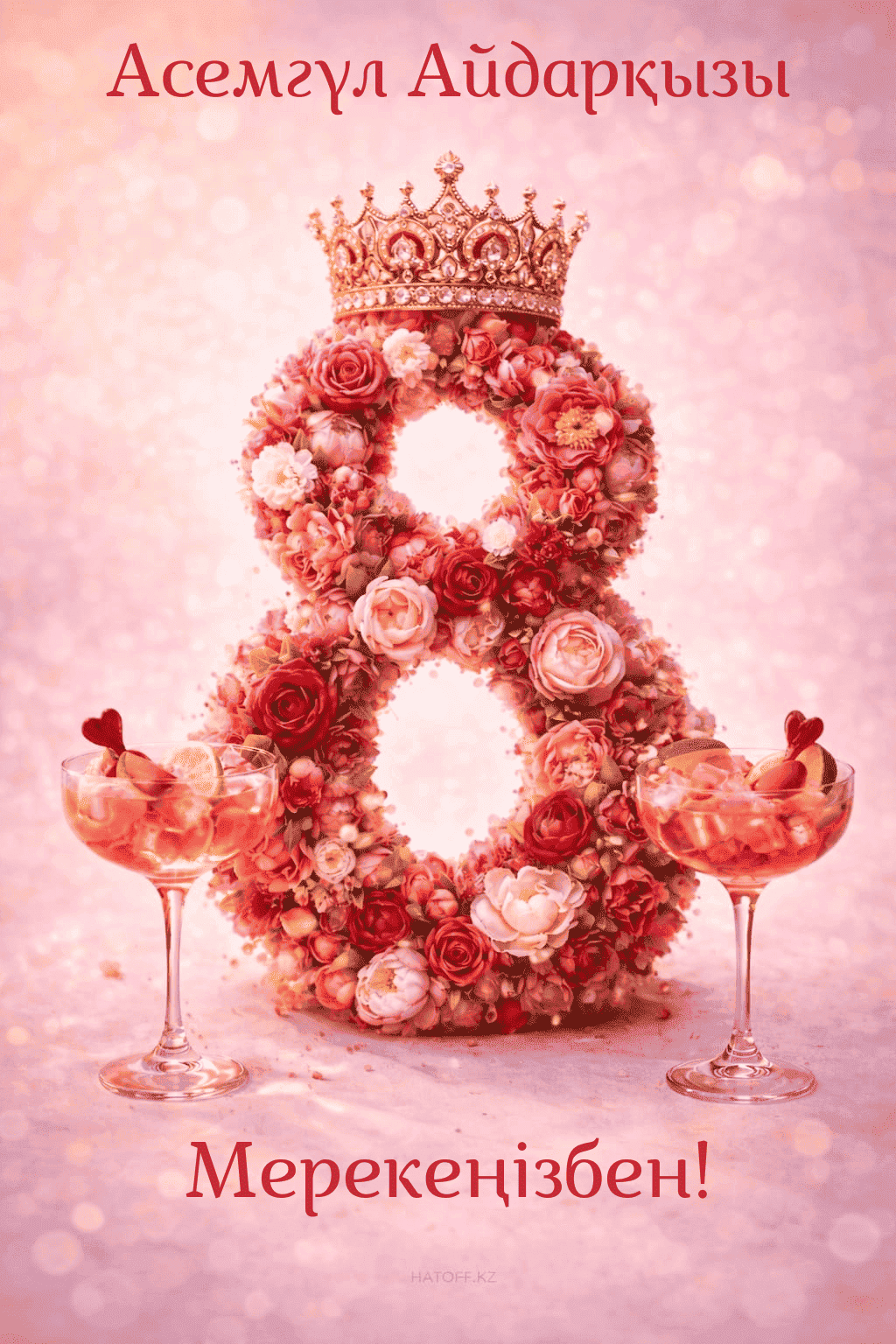 Скачивайте в Галерею и отправляйте сколько угодно раз, или поделитесь через WhatsApp / Telegram — от имени hatoff.kz с вашей подписью.
